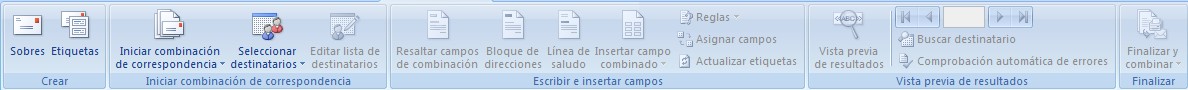 En esta barra puedes encontar combinación de correspondencias,insertar o escribir campos,vista previa de resultados entre otras funciones.